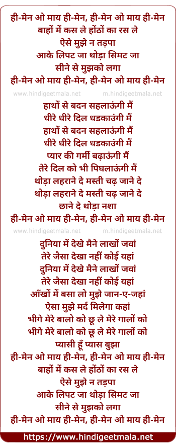 Lyrics of He Man O My He Man, Baanhon Men Kas Le - ही मेन ओ माय ही मेन, बाहों में कस ले