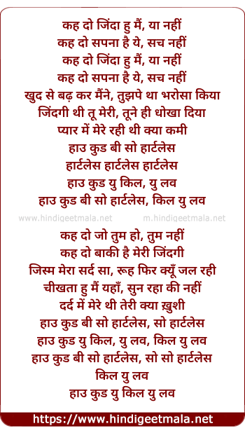 Lyrics of Keh Do Zinda Hu Main, Ya Nahi - Title Song - कह दो जिंदा हु मैं, या नहीं