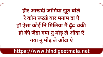 Lyrics of Heer (Jugni) - हीर आखदी जोगिया झूठ बोले