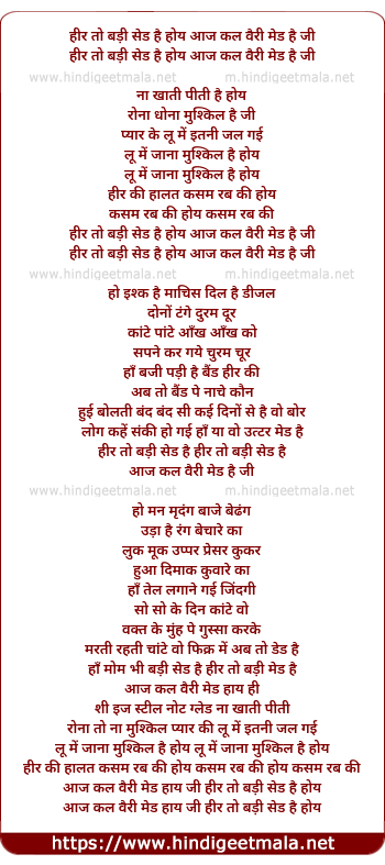 Lyrics of Heer To Badi Sad Hai - हीर तो बड़ी सेड है