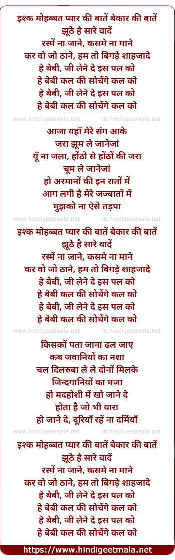 Hey Baby, Jee Lene De Iss Pal Ko - हे बेबी, जी लेने दे इस पल को