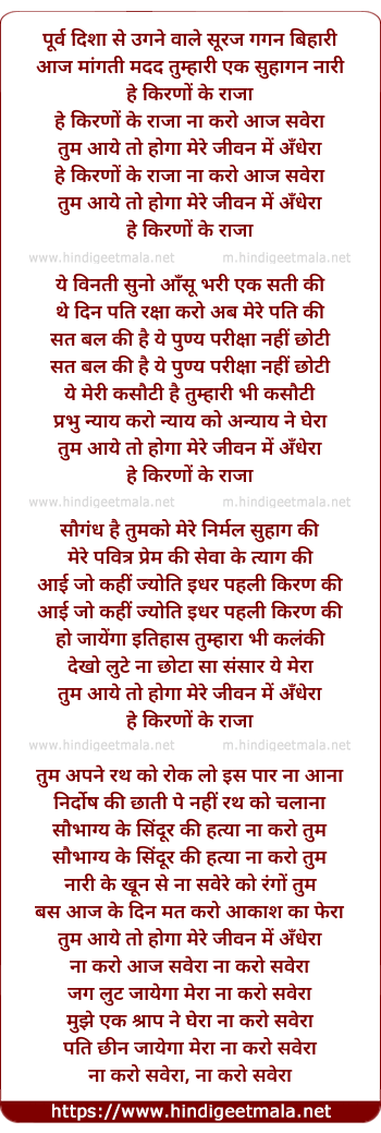 Lyrics of Hey Kirano Ke Raja Na Karo - हे किरणों के राजा ना करो