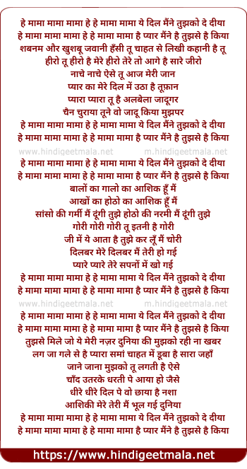 he mama mama mama he he mama yeh dil maine tujhko de diya