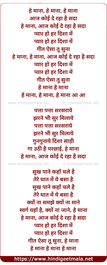 Lyrics of Hey Manaa Hey Manaa Aaj Koi De Raha Hai Sadaa - हे माना हे माना आज कोई दे रहा है सदा