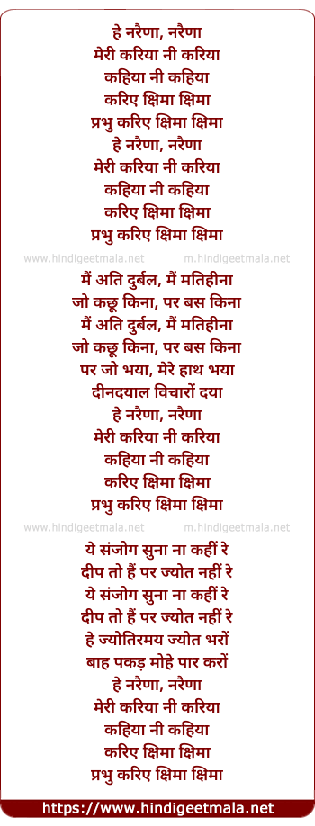 Lyrics of Hey Naraina (Male) - हे नरैणा, नरैणा