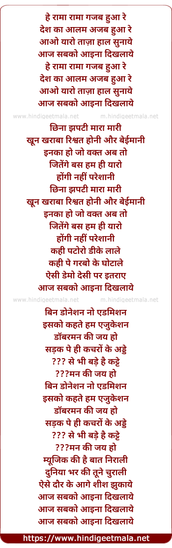 Lyrics of Hey Rama Rama - हे रामा रामा गजब हुआ रे