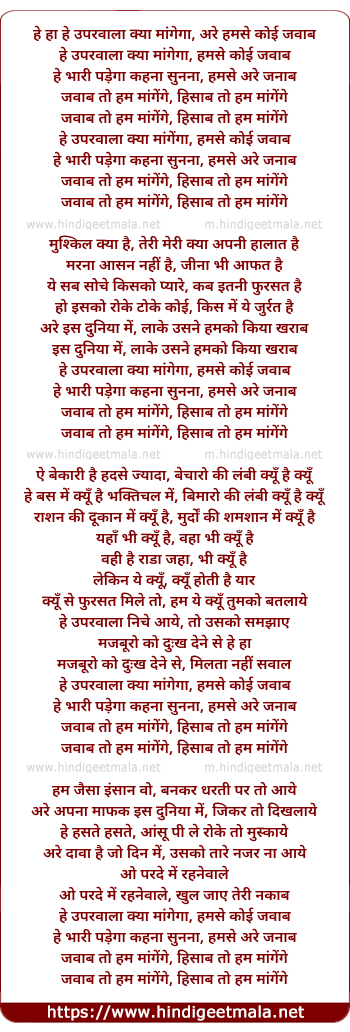 hey uparwla kya maangega, humse koi jawab