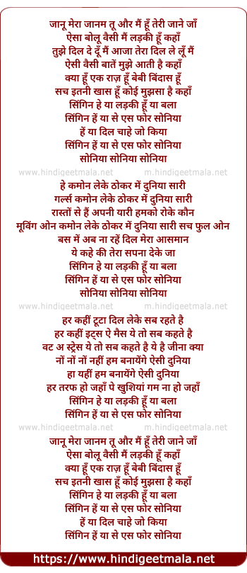 Lyrics of Jaanu Mera Janam Tu - जानू मेरा जानम तू