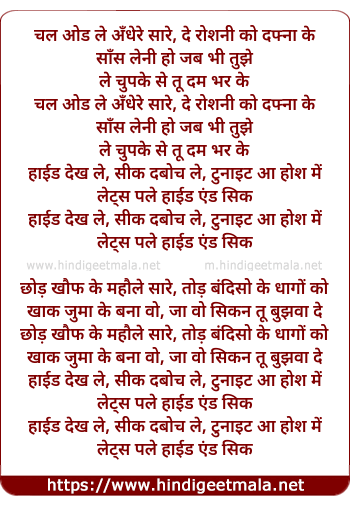 hide dekh le, seek daboch le, tonight aa hosh me