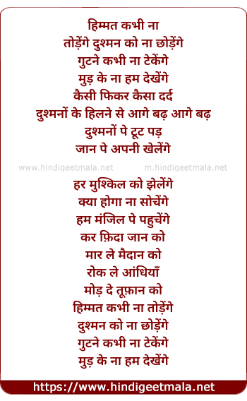 Lyrics of Himmat Kabhi Na Todenge - हिम्मत कभी ना तोड़ेंगे