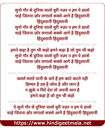 Lyrics of Hindustani - हिन्दुस्तानी