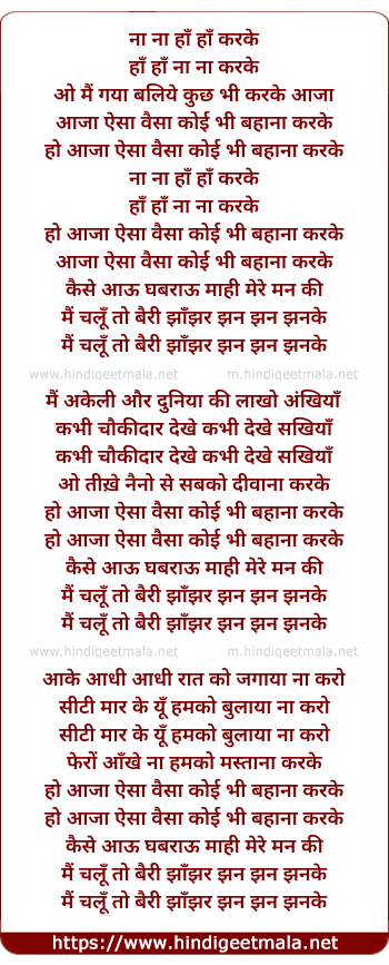 Lyrics of Ho Aaja Aisa Waisa Koi Bhi Bahana Karke - हो आजा ऐसा वैसा कोई भी बहाना करके