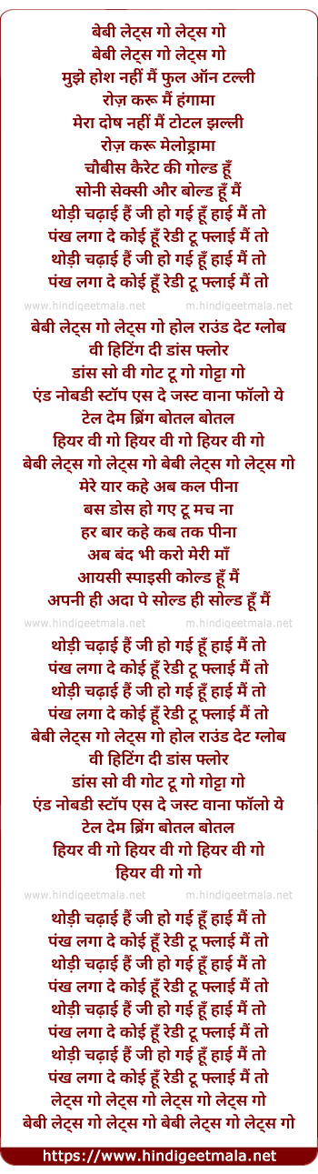 Poetic Translation - Lyrics of Ho Gayi High - बेबी लेट्स गो लेट्स गो