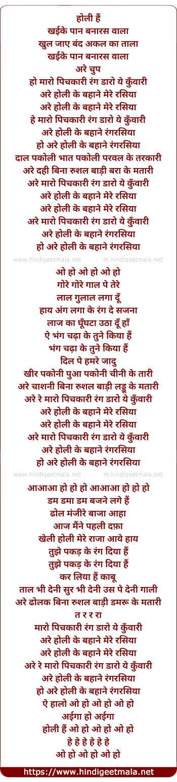Lyrics of Ho Maro Pichkari - हो मारो पिचकारी