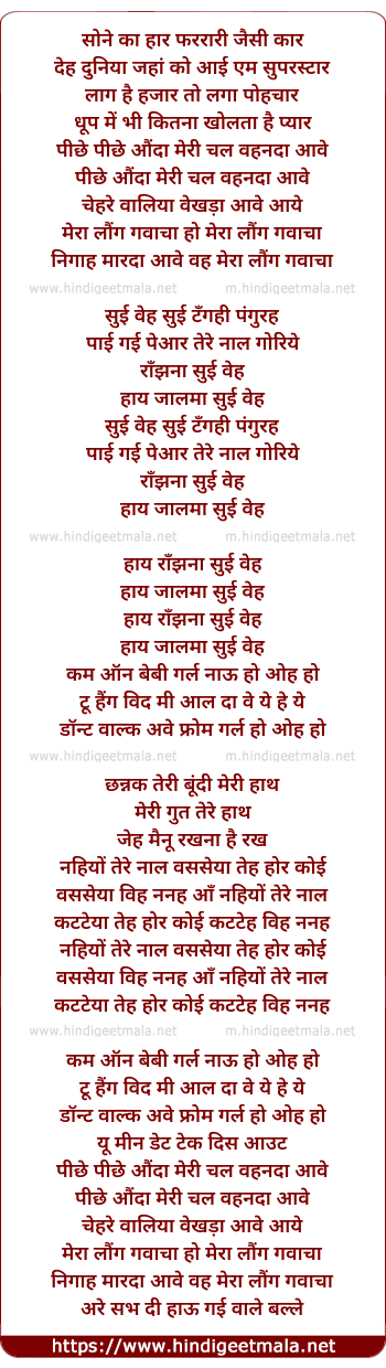 Lyrics of Ho Mera Laung Gawacha - हो मेरा लौंग गवाचा