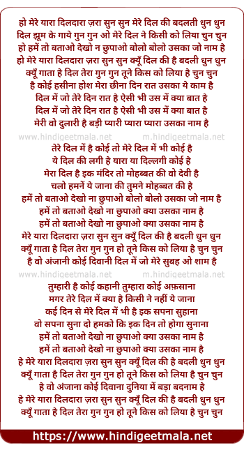 Lyrics of Ho Mere Yara Dildara Jara Sun Sun - हो मेरे यारा दिलदारा ज़रा सुन सुन