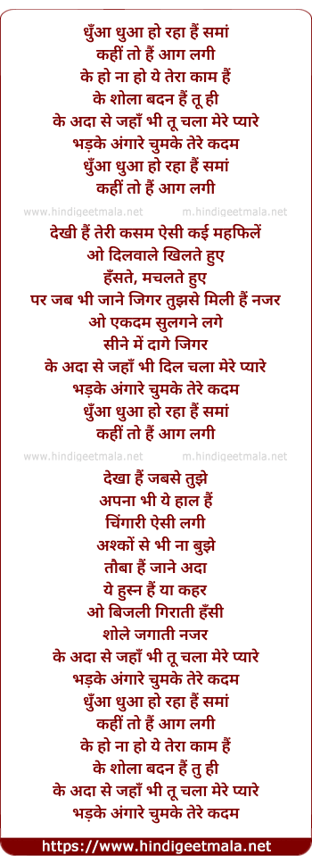 Lyrics of Ho Raha Hai Sama - धुँआ धुआ हो रहा हैं समां