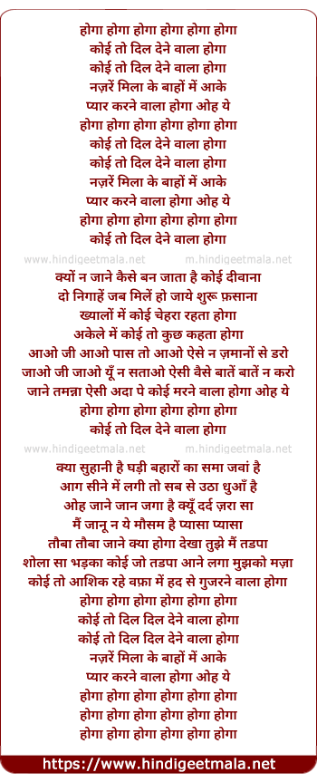 Lyrics of Hoga Hoga - होगा होगा होगा होगा होगा होगा