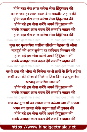 Lyrics of Hoke Bada Mera Lal - होके बड़ा मेरा लाल