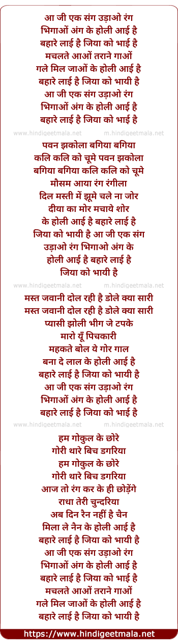 Lyrics of Holli Aai Hai Bahare Layi Hai - होली आई है बहारे लाई है