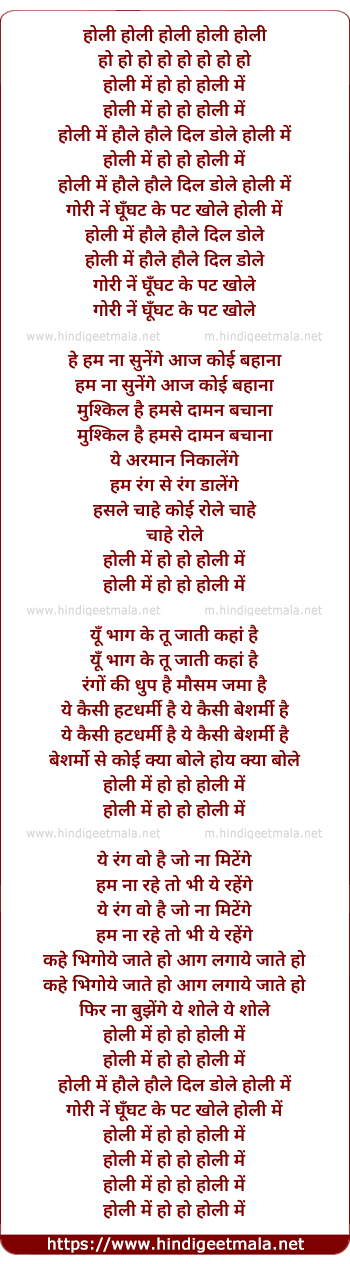 Lyrics of Holi Me Haule Haule Dil Dole II - होली में हौले दिल डोले II