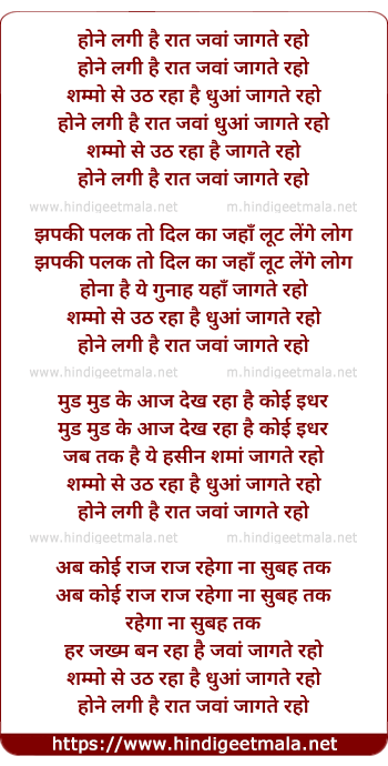 Lyrics of Hone Lagi Hai Raat Jawan - होने लगी है रात जवां