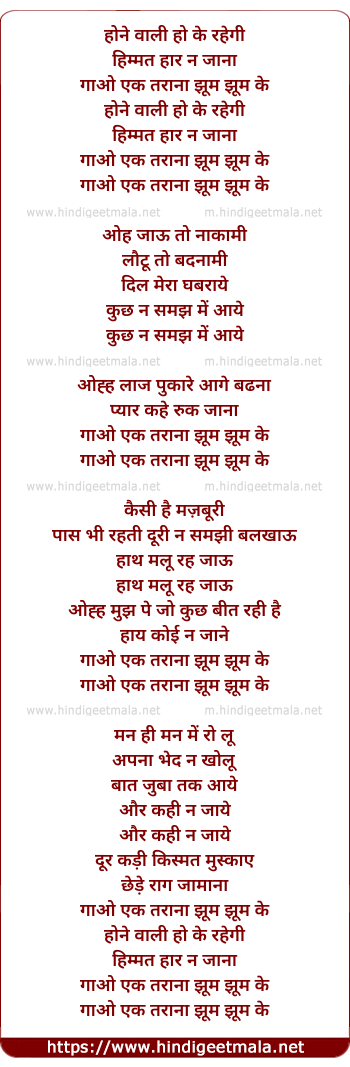 Lyrics of Hone Waali Hoke Rahegi - होने वाली होके रहेगी