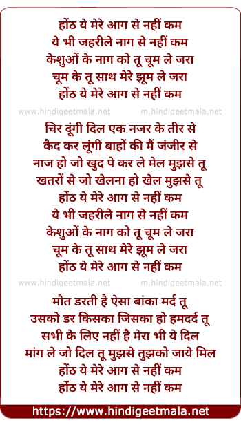 Lyrics of Honth Ye Mere Aag Se Nahi Kam - होंठ ये मेरे आग से नहीं कम