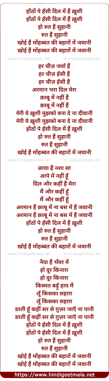 Lyrics of Hontho Pe Hansi Dil Me Hai Kushi - होंठों पे हँसी दिल में हैं ख़ुशी