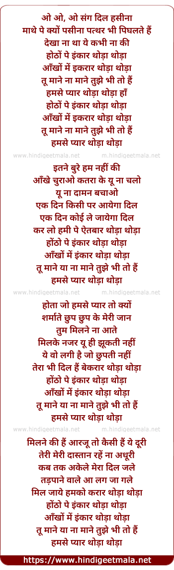 Lyrics of Honthon Pe Inkar Thoda Thoda Aankho Mein Ikrar Thoda Thoda - होठों पे इंकार थोड़ा थोड़ा आँखों में इकरार थोड़ा थोड़ा