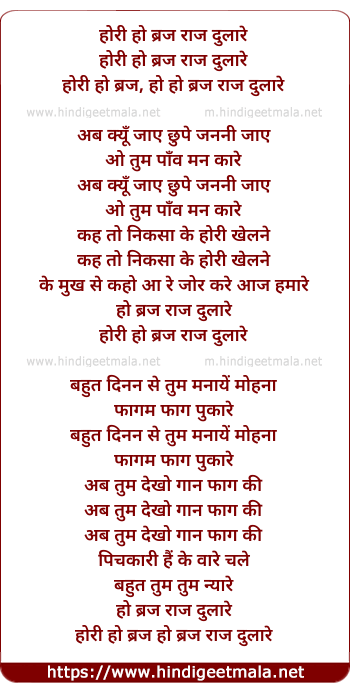 Lyrics of Hori Ho Braj Raaj Dulaare - होरी हो ब्रज राज दुलारे