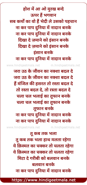 Lyrics of Hosh Mein Aa O Murakh Bande - होश में आ ओ मुर्ख बन्दे