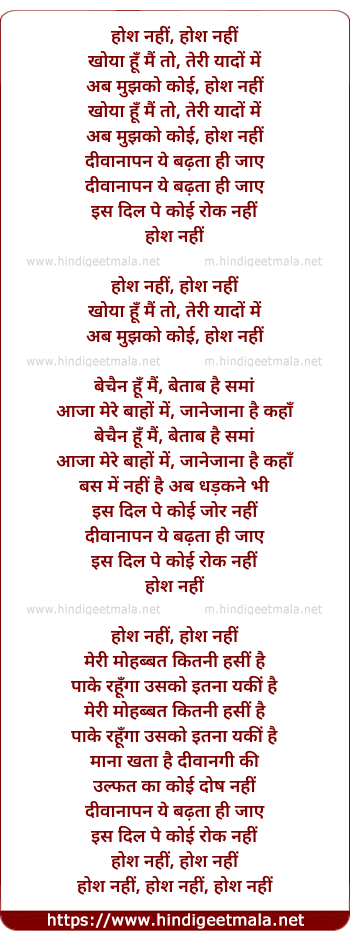 Poetic Translation - Lyrics of Hosh Nahi - होश नहीं