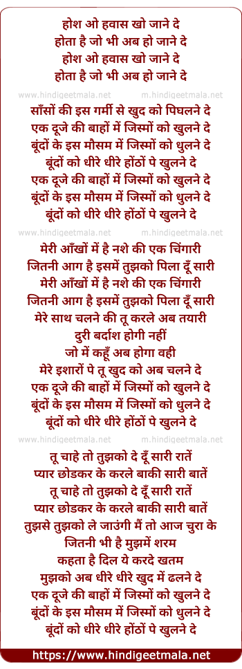 Lyrics of Hosh O Hawas - होश ओ हवास