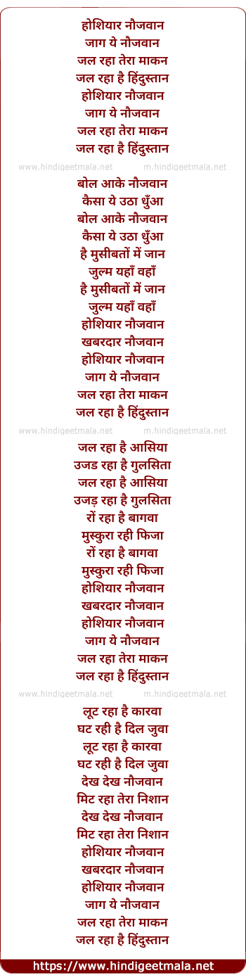 Lyrics of Hoshiyar Naujawan Jaag - होशियार नौजवान