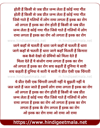 Lyrics of Hoti Hai Kisi Se Jab Preet - होती हैं किसी से जब प्रीत