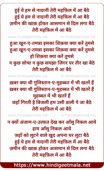 Lyrics of Hui Ye Ham Se Naadaani - हुई ये हम से नादानी