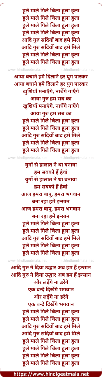 Lyrics of Hule Maale Gile Chila - हूले माले गिले चिला