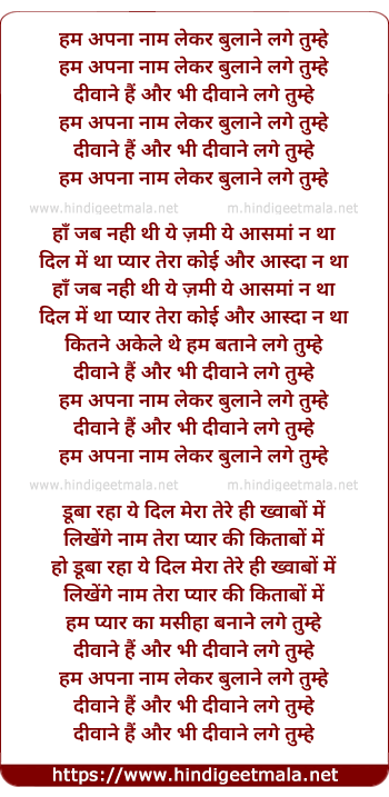 Lyrics of Hum Apna Naam Lekar - हम अपना नाम लेकर