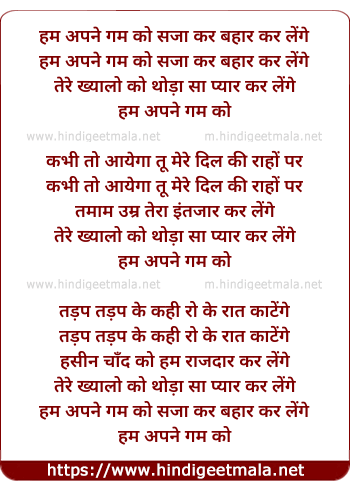 Lyrics of Hum Apne Gum Ko Saja Kar - हम अपने गम को सजा कर