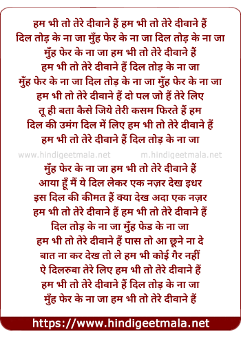 Lyrics of Hum Bhi To Tere Diwane Hai - हम भी तो तेरे दीवाने हैं
