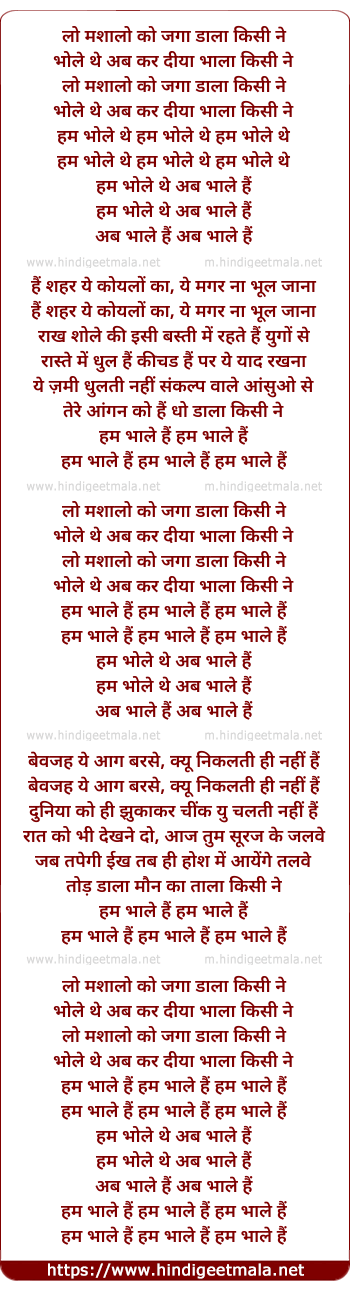 Lyrics of Hum Bhole The (Ab Bhaale Hain) - लो मशालो को जगा डाला किसी ने