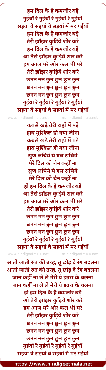Lyrics of Hum Dil Ke Hai Kamzor - हम दिल के है कमजोर बड़े