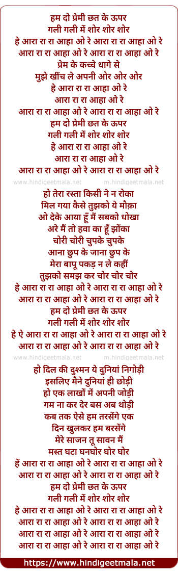 Lyrics of Hum Do Premi Chhat Ke Upar - हम दो प्रेमी छत के ऊपर