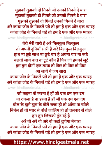 Lyrics of Hum Hai Ek Aur Ek Gyarah - हम है एक और एक ग्यारह