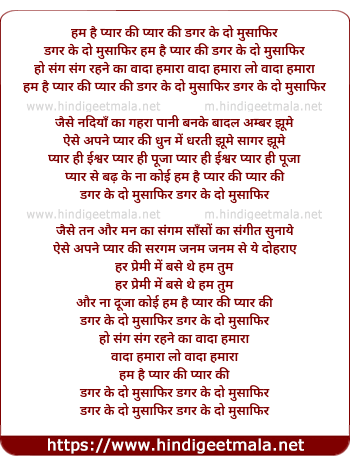 dagar ke do musafir hum hai pyar ki dagar ke do musafir