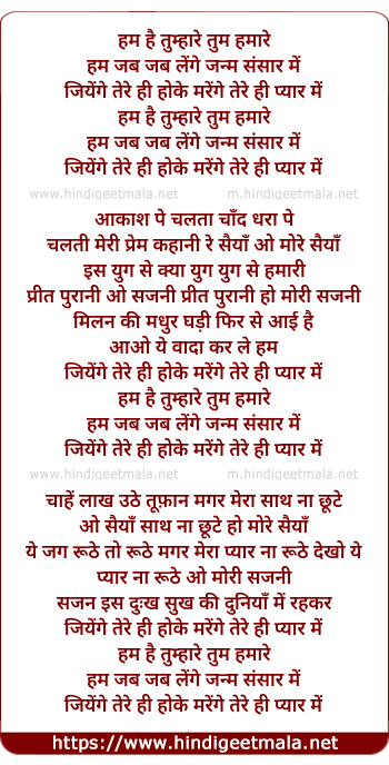 Lyrics of Hum Hai Tumhare Tum Humare - हम है तुम्हारे तुम हमारे