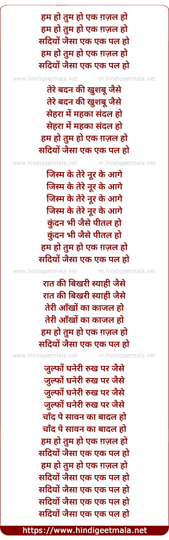 Lyrics of Hum Ho Tum Ho - हम हो तुम हो एक ग़ज़ल हो