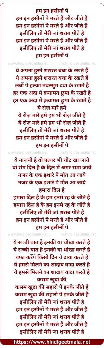 Lyrics of Hum In Haseeno Pe Marte Hain - हम इन हसीनों पे