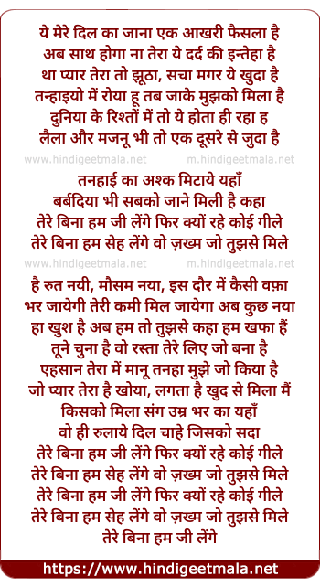 tere bina hum seh lenge wo zakhm jo tujhse mile